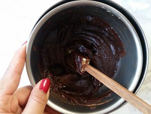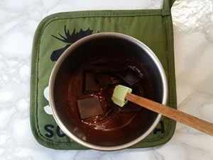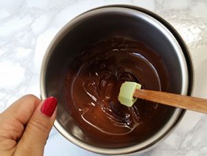 Agregamos el resto del chocolate, revolvemos hasta que se derrita todo.