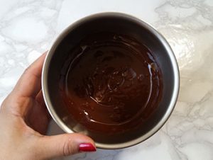 Ponemos la mitad del chocolate para los huevitos en el bowl, lo ponemos sobre otro bowl con agua caliente.