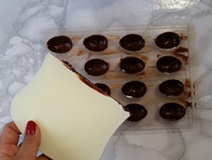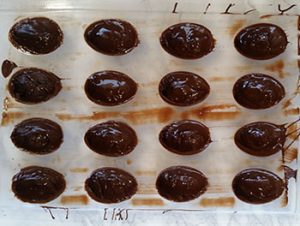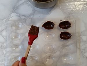 Repetimos los pasos 5 y 6 hasta lograr una capa gruesa en cada huevito, miren en molde a contra luz cuando esté seco para estar seguros que no hay espacios muy delgados.