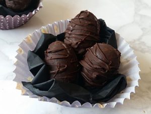 Si aún les sobra chocolate, pueden chorrear un poco sobre cada huevito para decorarlo. Guardamos en un lugar frío.